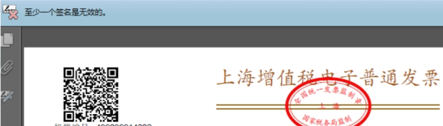 adobe PDF打开电子税务发票,提示:“至少一个签名是无效的”