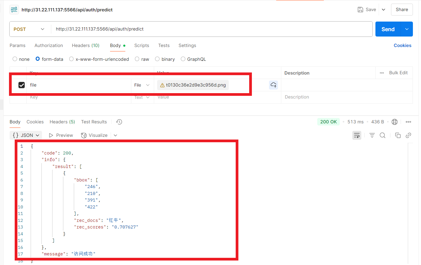 识别图片接口,接口地址POST:http://127.0.0.1:5566/api/auth/predict