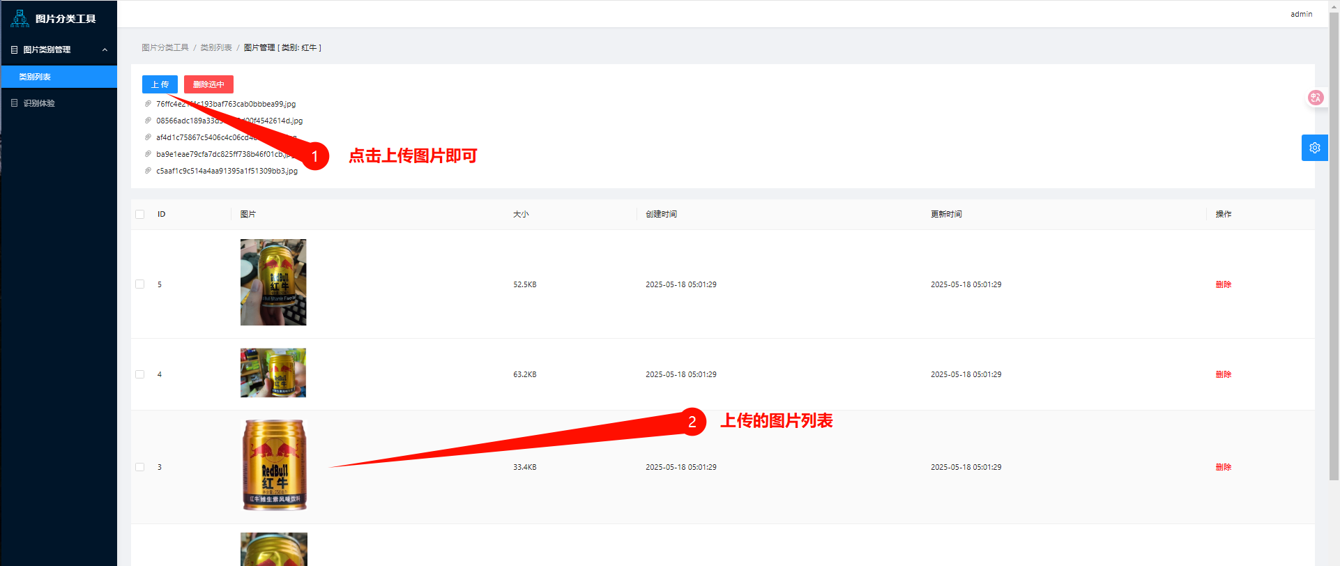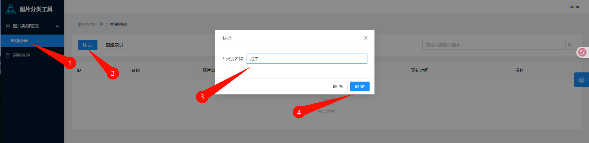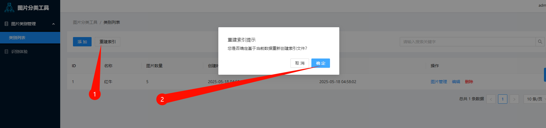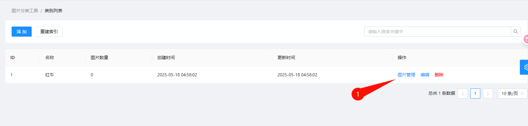 管理这个分类的图片,添加更多照片示例,可增加建立索引后的识别准确性