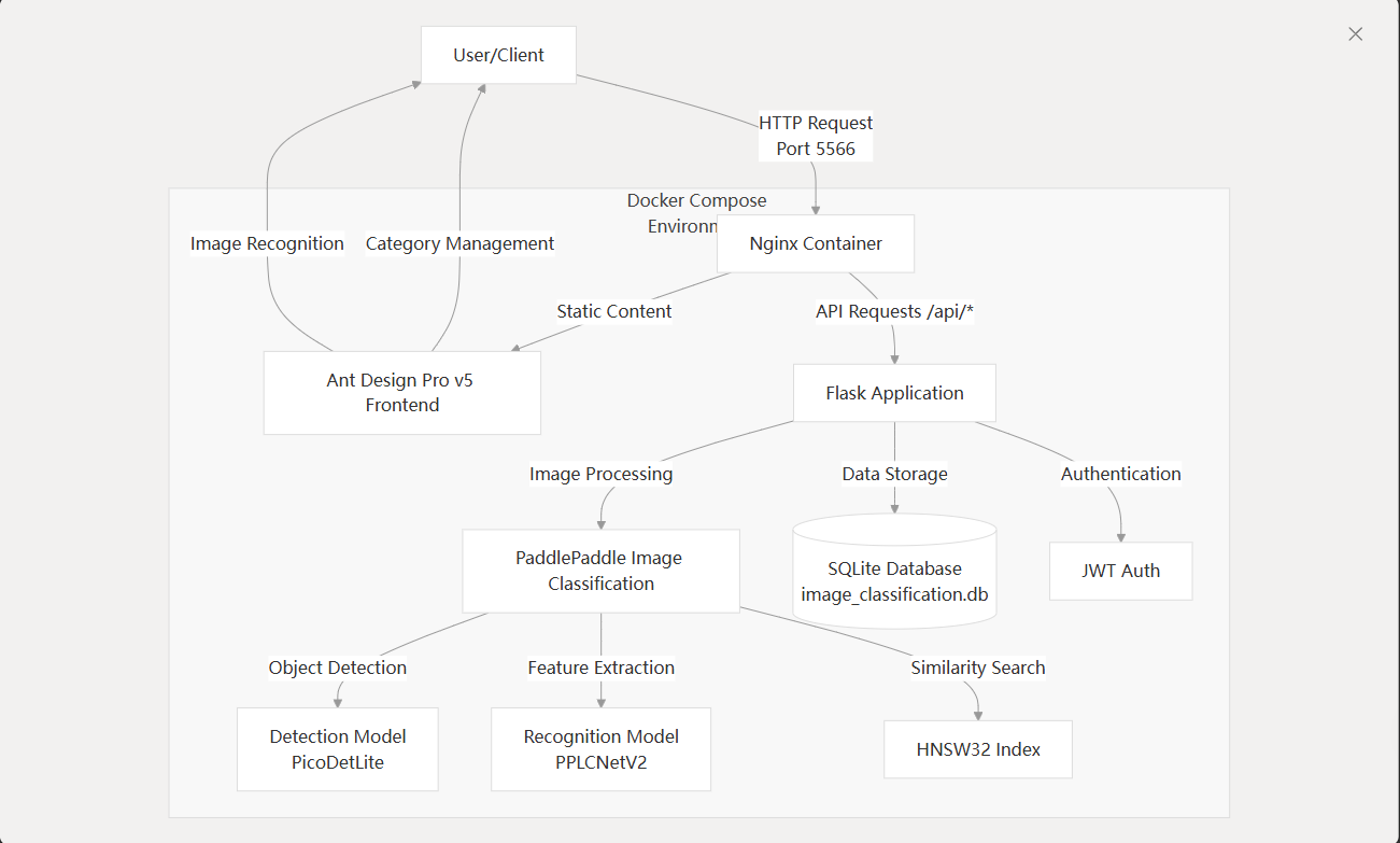 image_classification是一个基于 PP-ShiTuV2 技术实现的图片分类识别系统,把相关流程封装成简单的接口,提供在线管理页面,提供API直接调用,支持Docker快速部署